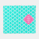 Bright Aqua and White Moroccan Quatrefoil Trellis Pattern #5, Hot Pink #2 Quatrefoil 3 Initial Monogram Label