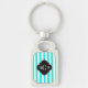 Brt Aqua Wht Stripe Black Quatrefoil 3 Monogram Key Ring