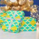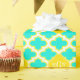 Bright Aqua, Yellow and White Moroccan Quatrefoil Lattice Pattern, Pineapple Yellow Quatrefoil 3 Initial Monogram Label