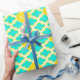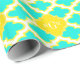 Brt Aqua Yellow Wht Quatrefoil 3 Initial Monogram Wrapping Paper
