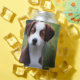 Pictured in a oil paint is a brown and white Border Collie puppy called Bruce.