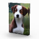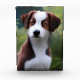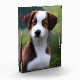 Pictured in a oil paint is a brown and white Border Collie puppy called Bruce.