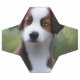 Pictured in a oil paint is a brown and white Border Collie puppy called Bruce.
