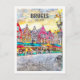 Bruges Belgium Famous Travel Watercolor Sketch Postcard