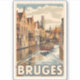 Bruges retro vector travel design. Bruges, known as the "Venice of the North," is a picturesque mediaeval city in Belgium, famous for its charming canals, historic architecture, and world-class chocolate.