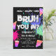 A teen boys "Bruh" themed birthday invitation using cool typography. A custom kids neon graffiti blue, green, pink and purple "pizza, arcade and cake " teenage boys birthday invitation design perfect for any teens birthday party theme. Customize this "Bruh" birthday invitation with your own text and make it your own!