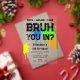 A teen boys "Bruh" themed birthday invitation using cool typography. A custom kids neon graffiti blue, green, yellow and orange "pizza, arcade and cake " teenage boys birthday invitation design perfect for any teens birthday party theme. Customize this "Bruh" birthday invitation with your own text and make it your own!