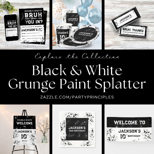 Grunge Paint Splatter Black & White Boys BirthdayDesigned by Sue L