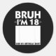 Bruh Im 18 Year Old Gifts 18th Birthday Boy Sign M Classic Round Sticker