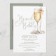 This sage green elegant script brunch and bubbly bridal shower invitation can be personalised with all your special event information and photo and registry QR code on the reverse. Designed by Thisisnotme©