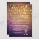 Bridal Shower / Wedding Celebration Invitation Card Templates - Elegant Faux Gold Foil Brunch & Bubbly Lettering Script, Vintage Champagne Glasses and String Lights on Rustic Wood Background.