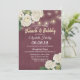 Bridal Shower / Wedding Celebration Invitation Card Templates - Elegant White lovely Watercolor Hydrangea Flowers and String Lights on Burgundy Red Background.
