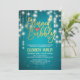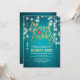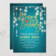 Bridal Shower / Wedding Celebration Invitation Card Templates - Elegant Faux Gold Foil Bridal Shower Lettering Script and Vintage String Lights with Turquoise Blue Glitter Sparkle Background.
