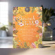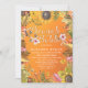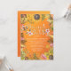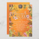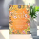 Brunch and Bubbly Bridal Shower Invitation Card Templates - Autumn Maple Leaves, Pumpkins and Sunflowers Watercolor Flowers on Orange Gradient Background.
