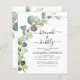 Budget Brunch and Bubbly Eucalyptus Greenery Succulent Botanical Watercolor Emerald Green Spring Wedding Bridal Shower QR Code Invitations on white background - includes beautiful and elegant script typography with modern botanical leaves and greenery for the special Bride to Be celebration.
