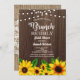 Watercolor sunflowers on rustic wood background with romantic string light.