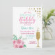 Pink Brunch & Bubbly - Champagne Faux Gold Glitter Birthday - any age - invite. SIMPLY CHANGE THE TEXT TO SUIT YOUR PARTY. Back print included.