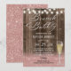 Brunch & Bubbly Rustic Rose Gold Glitter Barn Wood Bridal Shower Invitations.