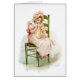 A charming vintage greeting card featuring a beautiful stitching girl from the calender One Hundred Years Ago from 1900, painted by the American illustrator Frances Brundage.