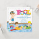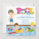 Start your pool party off right with our super cute swim pool party boy birthday party invitation Our unique summer pool beach party invitation features a cute brunette boy wearing a bathing suit standing on the edge of a pool with 2 boys swimming in the pool. Back of the invitation coordinates with the front and has swim noodles and a beach ball. Also available in a brunette boy and for girls in our shop. Perfect pool party invitation for a teen & tween swimming party. Just personalise with your information and you're all set to go! Matching items including birthday postage stamps, favour stickers, thank you cards & thank you stickers are also available in our shop. www.celebrateitinvites.com ©JW Illustrations