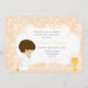 This First Communion Damask invitation features an adorable brown hair boy in a first holy communion suit.