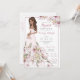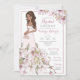 Floral bridal shower invitation features customisable blonde, brown, auburn hair and skin tones in a gorgeous flower wedding gown.