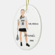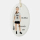 Celebrate the latest and best lacrosse player with this keepsake ornament. Customise to fit your athlete's information. The name, team and player details are included as a template or delete the text if not needed. Background and text colours can be changed if desired. Requests for specific colours, uniform styles, skin tones or hair colour are welcome if you contact the designer - Night Owl's Menagerie, original: 2018.