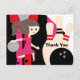 Easy to customise Brunette Girl Bowling Party birthday thank you postcards, a great match with our bowling party invitations!