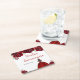This Quinceanera coaster features faux glitter red floral flowers and a beautiful princess with brunette hair and an elegant dress. This is perfect for a Quinceanera birthday party.