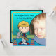 A little brown haired construction worker in a yellow hard hat with a hammer and several other construction workers with areas you can easily customise with your child's photo and birthday party specifics on Little Fix-It Man birthday invitations! Great for construction or little carpenter theme birthday parties!