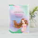 Softly swirling sea around a beautiful blonde mermaid creates the perfect mystical effect for this gorgeous under the sea themed birthday invitation card.