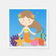 Brunette Mermaid Birthday paper napkins features a pretty mermaid with brown hair decorated with colourful starfish, orange mermaid tail, starfish, sea weed, and the blue ocean. We have the matching mermaid paper plates and birthday invitations!