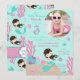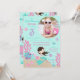 Little mermaid third birthday invitation card with underwater creatures and a photo insert template.