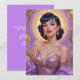Brunette Pin-Up Easter Eggs Gold and Purple Holiday Card