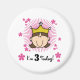 Brunette Princess with crownand pretty pink flowers 3rd Birthday design.