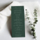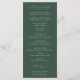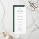 BRUNSWICK CREST, wedding program. Features, elegant green typography and botanical greenery and floral adorned crest on front with white typography and green background colour on back.