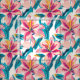 Big, bold petals in radiant shades of pink, magenta, and sunshine yellow bloom alongside graceful lilies, all rendered in a painterly, hand-brushed style. Expressive teal leaves sweep outward with fluid motion, adding contrast and depth against a crisp white background. The composition feels alive with movement and joy, balancing the drama of oversized blossoms with the elegance of lilies. Printed on high-quality fabric, this design offers both beauty and versatility—perfect for upholstery, drapery, statement cushions, or fashion pieces that call for vibrant energy. Durable yet soft to the touch, the fabric showcases the richness of colour and the artistry of brushwork, making it an ideal choice for modern interiors or bold, creative projects.