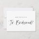 Ask friends and family to be part of your wedding party with this feminine and modern "Will you be my junior bridesmaid?" card. It features dark charcoal watercolour brush lettering and a mint coloured back. Personalise by the recipient's name and message.