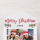 Modern Brush Script 2 Photo Merry Christmas All In One Card includes Watercolor Christmas Holly Berries - Red Script