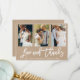 Modern Brush Script 3 Photo Wedding Love and Thanks Kraft Thank You Card