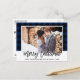 Modern Brush Script Blue Plaid Couple Photo Christmas Postcard
