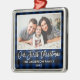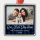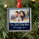 Modern Brush Script, Rustic Blue Plaid Our First Christmas Family Photo Ornament
