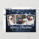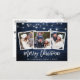 Brush Script Blue Wood Lights 3 Photo Christmas Postcard