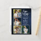 Modern Brush Script 4 Photo Couple Engagement Announcement Save The Date Postcard - Rustic Country Blue Wood