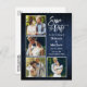Brush Script Blue Wood Save The Date 4 Photo Postcard