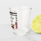 Modern Brush Script, Watercolor Burgundy Marsala Floral with Black and White Stripes Mr. and Mrs. Wedding Shot Glass