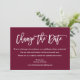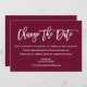 Modern Brush Script Change The Date Wedding Postponed Card Burgundy