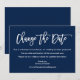 Modern Brush Script Change The Date Wedding Postponed Card Navy Blue