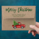 Brush Script Merry Christmas Vintage Red Truck with Christmas Tree Kraft Envelope