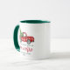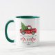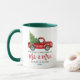 Modern Brush Script Our First Christmas as Mr. and Mrs. Watercolor Vintage Red Truck with Christmas Tree Coffee Mug - Green and White